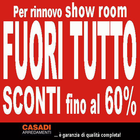 per rinnovo show room. CASADI arredamenti sconta tutti i suoi prodotti esposti del 20% 30% 40% .... non lasciarti perdere questa occasione!!!! TI ASPETTIAMO!!!